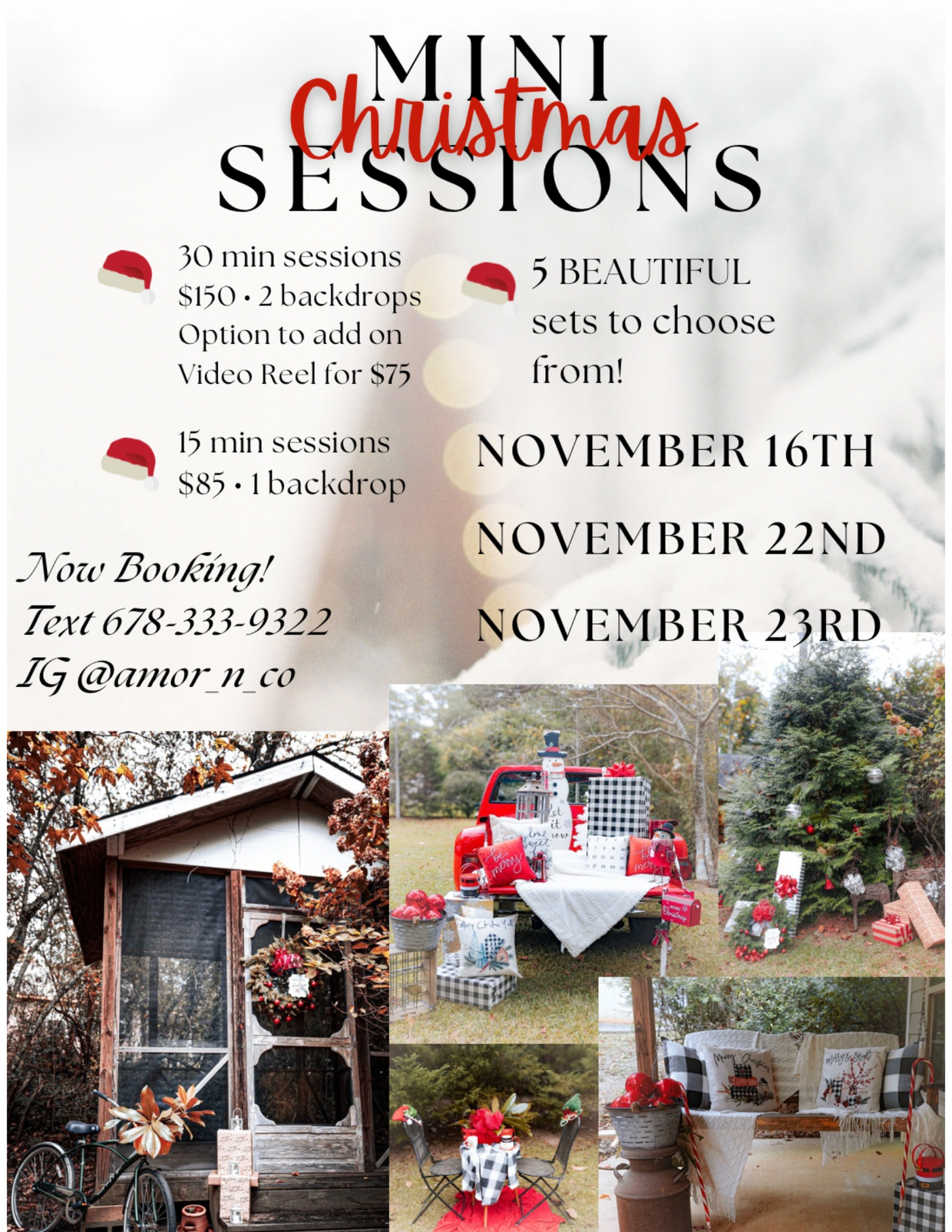 15 Mini Sessions -$85 /1 background Nov. 16 Nov. 22 Nov. 23